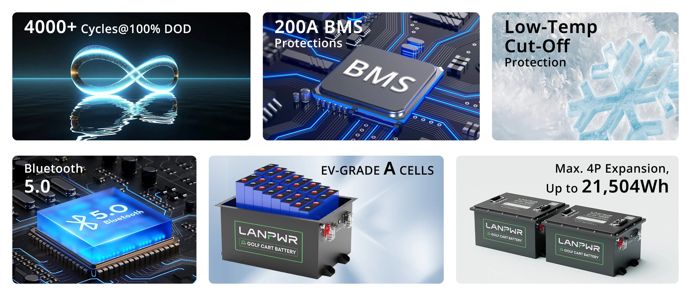 LANPWR is committed to providing innovative, high-quality LiFePO4 battery solutions for golf cart owners and course operators. The LANPWR 48V 105Ah lithium battery incorporates cutting-edge technology trusted by golf cart users worldwide, designed to elevate your golfing experience. Order yours today and let’s kickstart your adventure on the green!