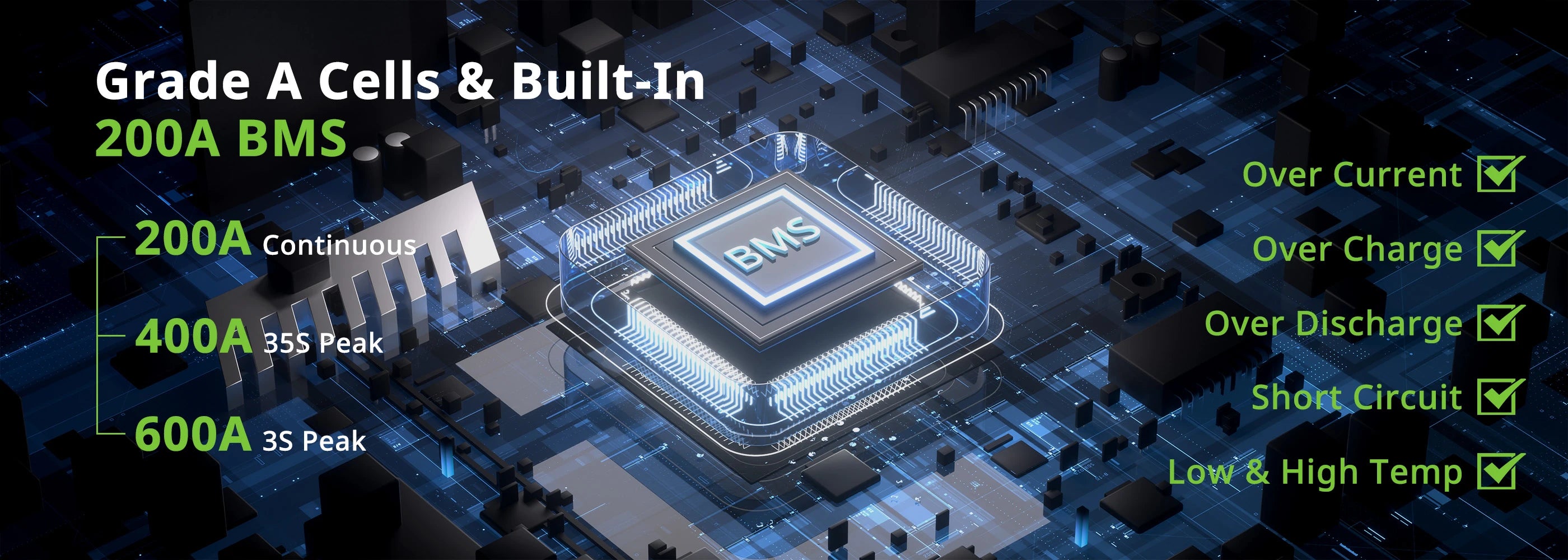 - Advanced Protection & Smart Management: Built-in 200A BMS protects against overcharge, over-discharge, short circuits, and temperature extremes, ensuring safe and dependable operation. Fully maintenance-free and engineered for long-term reliability.